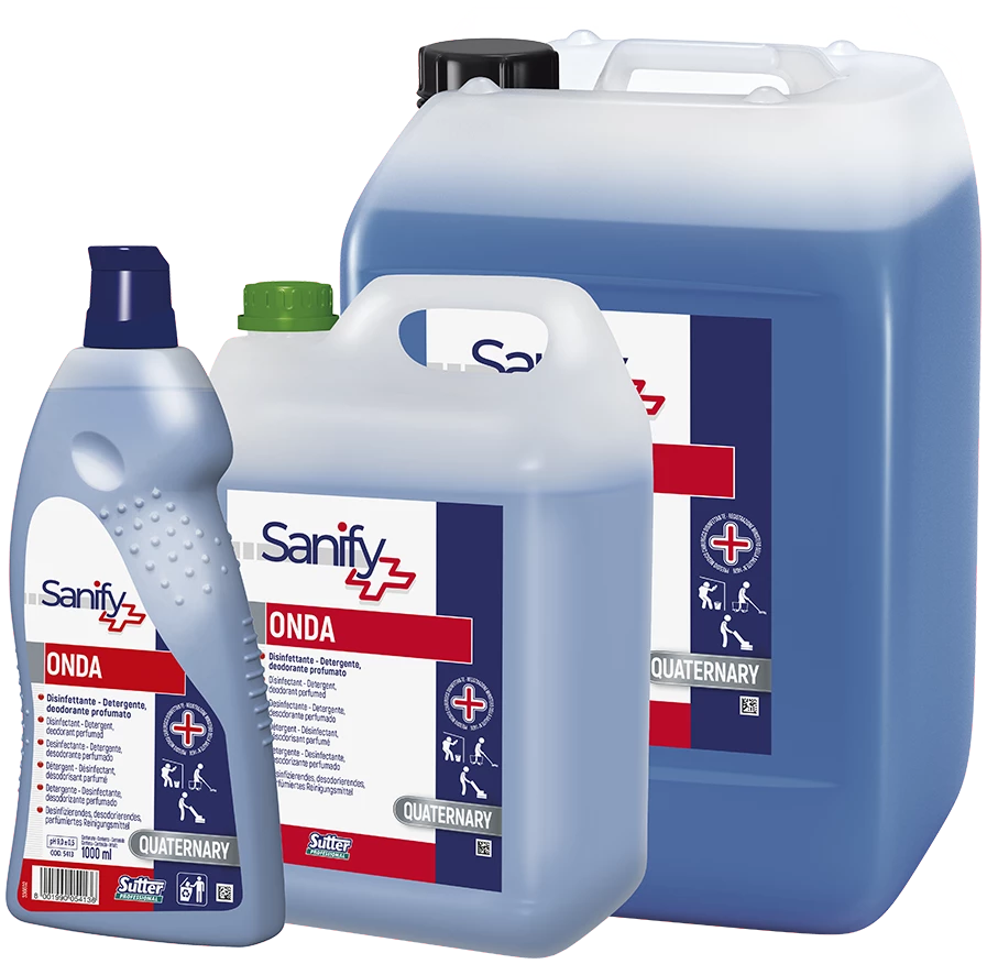 Onda es un desinfectante detergente de doble acción. El principio activo cloruro de alquildimetilbencilamonio unido a los tensioactivos no iónicos y las esencias balsámicas garantiza un seguro efecto desinfectante detergente y también desodorizante. Onda está particularmente indicado para desinfectar y desodorizar donde existe el peligro de contaminación y en todos los locales destinados al público (escuelas, hoteles, oficinas, servicios higiénicos). Producto incluido en el ministerio de sanidad válido contra el Coronavirus